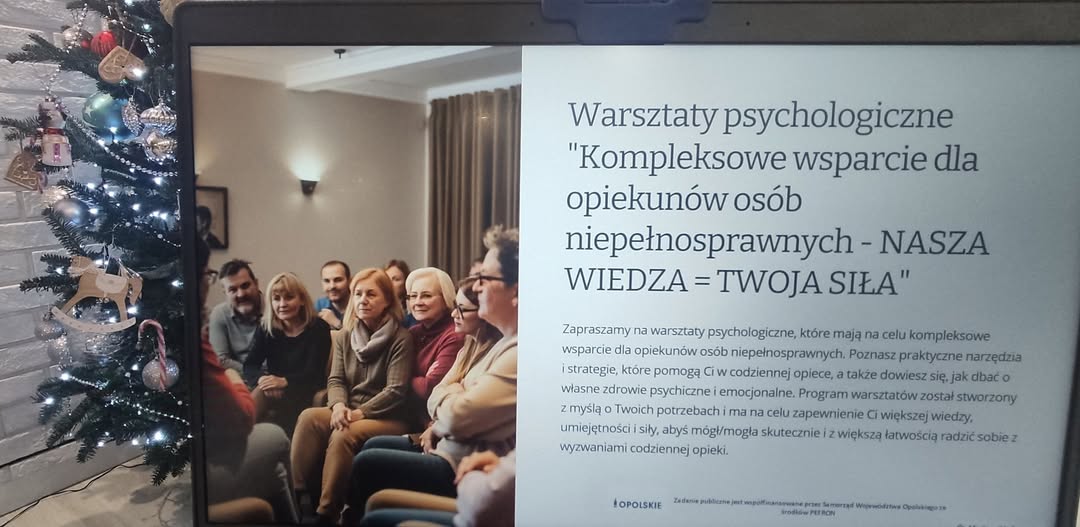 Warsztaty są częścią projektu „Kompleksowe wsparcie dla opiekunów osób niepełnosprawnych – NASZA WIEDZA = TWOJA SIŁA”, realizowanego dzięki wsparciu ze środków PFRON oraz uprzejmości Marszałka Województwa Opolskiego.